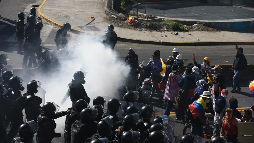 En Quito la mayoría de marchas son pacíficas, pero en las noches estallan los disturbios y los choques con la fuerza pública. Unos 10.000 indígenas venidos de sus territorios protestan en la capital de tres millones de habitantes desde el lunes.