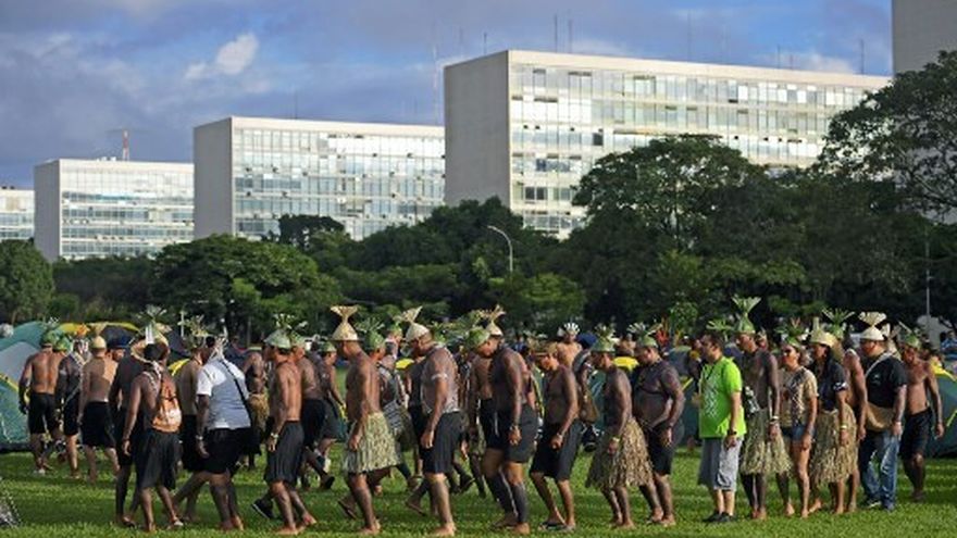 Los líderes indígenas empezaron a instalar durante la madrugada su "Campamento Tierra Libre" en la Explanada de los Ministerios, enmarcados por importantes contingentes policiales, comprobaron periodistas de la AFP.