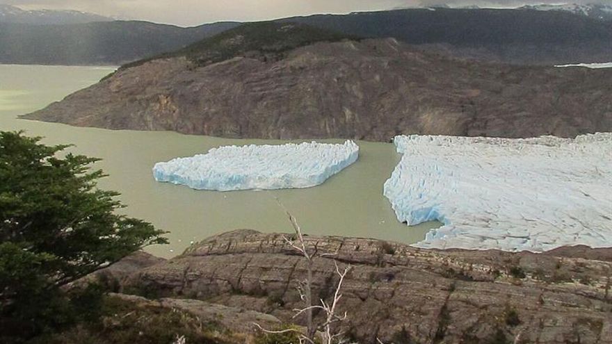 El témpano de 350 por 380 m se desprendió del glaciar Grey ubicado en el Parque Nacional Torres del Paine, uno de los puntos turísticos más visitados en el sur de Chile, a unos 2,000 kilómetros de Santiago.