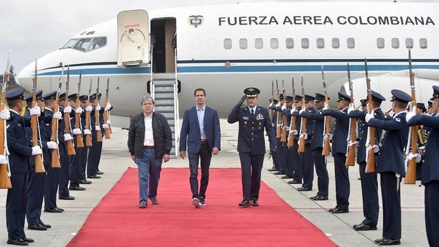 El jefe del Parlamento venezolano, Juan Guaidó, quien se proclamó mandatario interino de su país en enero, llegó este domingo a Bogotá para participar en la reunión del Grupo de Lima sobre la crisis de Venezuela.