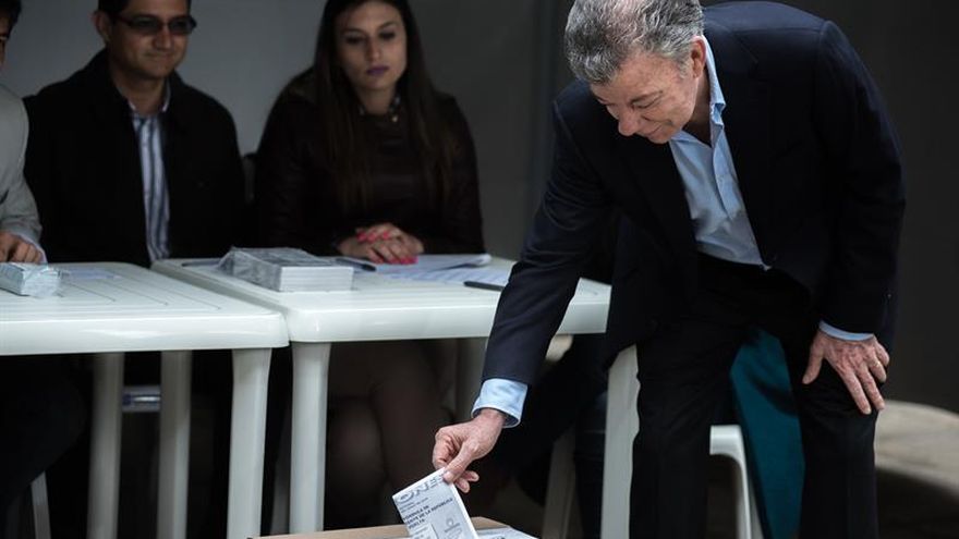 El presidente colombiano, Juan Manuel Santos, afirmó este domingo después de votar en Bogotá que las elecciones de este domingo para escoger a su sucesor en segunda vuelta son "trascendentales" porque se celebran en un ambiente de paz.