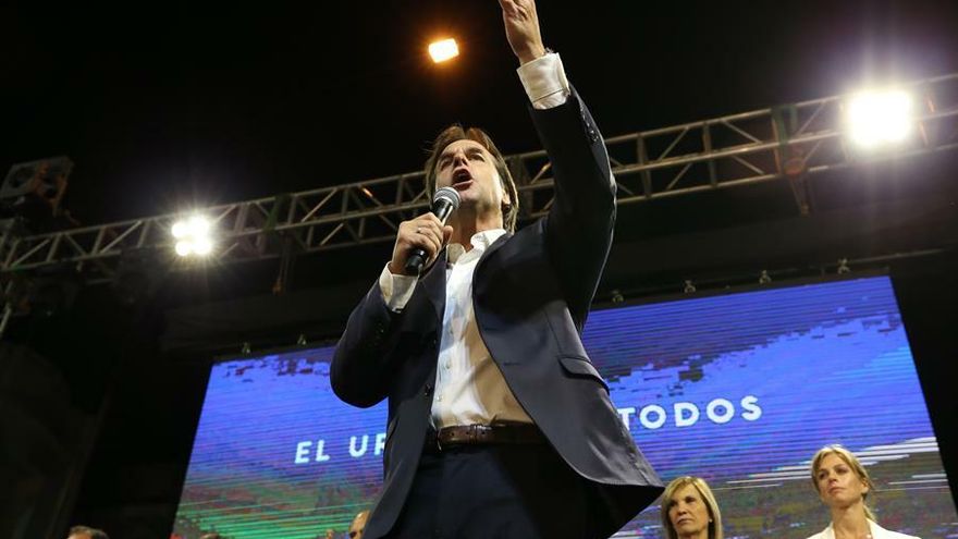El presidente electo de Uruguay, Luis Lacalle Pou, acude este viernes a la sede de su comando de campaña por primera vez después de que este jueves las cifras del segundo escrutinio de la Corte Electoral lo dieran por ganador definitivo en la segunda vuelta de los comicios celebrados el domingo pasado.