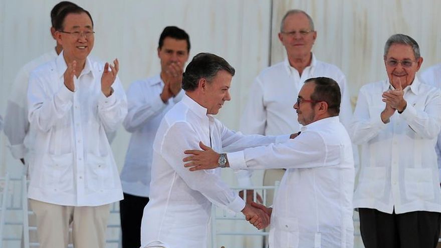 Colombia sella con esta firma un histórico acuerdo de paz con la guerrilla FARC, que se espera sea ratificado en un plebiscito, encaminándose al fin de un conflicto que ha dejado cientos de miles de muertos en más de medio siglo.