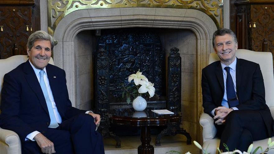 El presidente de Argentina, Mauricio Macri, recibió hoy en su despacho de la Casa Rosada, sede del Gobierno argentino, al secretario de Estado de Estados Unidos, John Kerry, que se encuentra de visita oficial en el país austral.