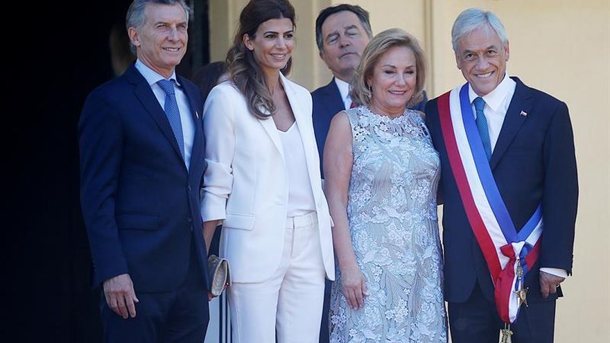 Macri, junto a su esposa, Juliana Awada, agasajó con una cena en la noche del miércoles en su residencia a Piñera y su mujer, Cecilia Morel, y recibió hoy, a las 12.00 hora local (15.00 GMT) y con el habitual protocolo, a su par en la Casa de Gobierno.