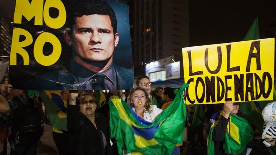 A menos de una cuadra, frente a la Federación de Industrias del Estado de Sao Paulo (FIESP), la más influyente patronal del país, otros movimientos contrarios al líder sindical se reunieron para celebrar la condena y portando banderas de Brasil y carteles a favor del juez Moro pidieron la prisión inmediata del exgobernante.