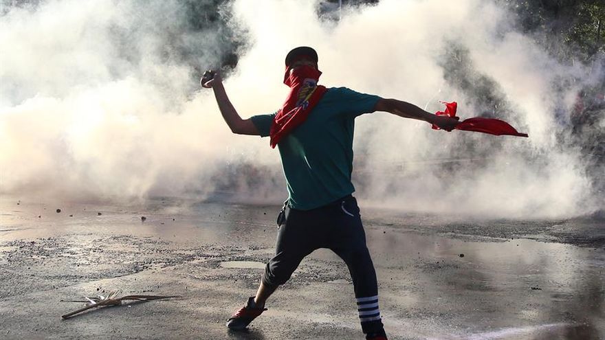 Con cacerolazos y banderas, una masa de personas desafió el gran cerco policial y lanzó consignas contra el Gobierno, al tiempo que coreó los míticos "Chile despertó" y "El pueblo unido jamás será vencido", convertidos en lemas de la grave ola de protestas que estalló en 2019.