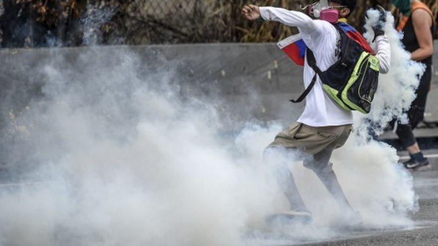 Otra manifestación en el estado de Vargas, vecino a Caracas, también terminó siendo dispersada con lacrimógenas. Y en Carora (Lara, noroeste), "grupos de civiles armados" detuvieron a dos manifestantes que con sus cuerpos habían formado la frase: "Fuera Maduro".