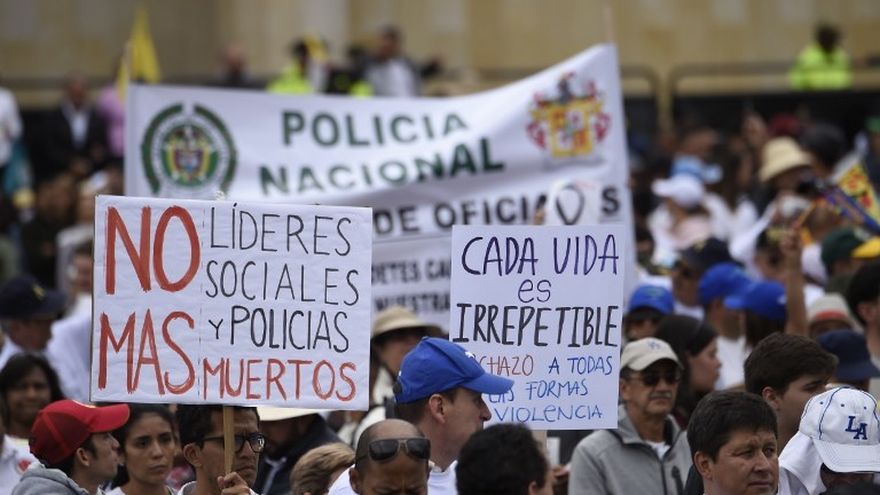 "Nos manifestamos para rechazar toda forma de violencia, sea contra los policías o los líderes sociales", dijo a la AFP Yeison Torres, un universitario de 19 años.