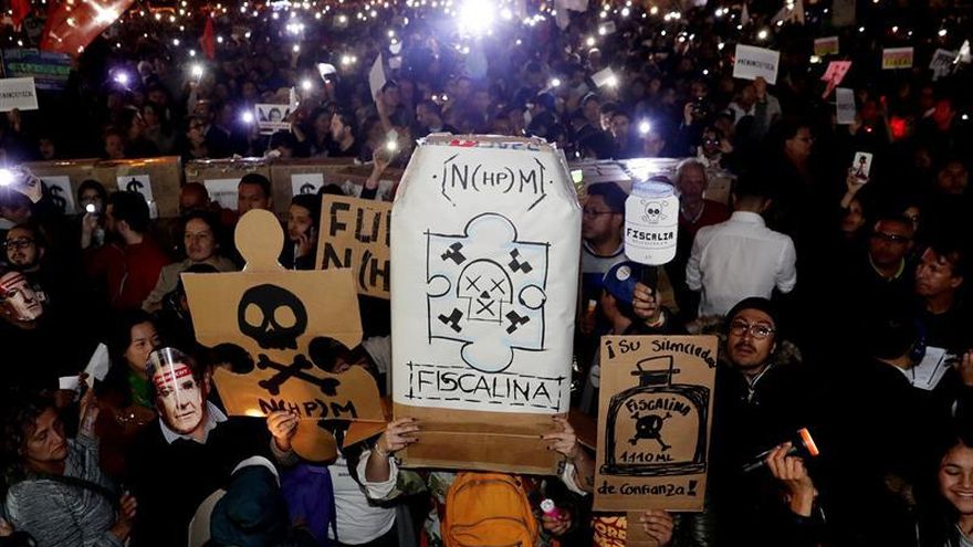 En Bogotá, la gente enarboló linternas y pancartas que decían "Colombia necesita la renuncia del Fiscal" y otra más rezaba "fuera el fiscal".
