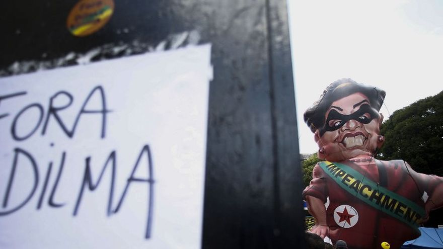 Al grito de "Fuera Dilma", numerosos ciudadanos vestidos de verde o amarillo en su mayoría recorrieron este domingo algunos de los puntos más emblemáticos del país, portando pancartas que pedían la destitución de la jefe de Estado brasileña.