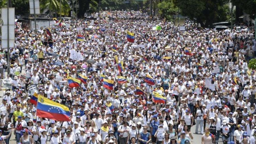 Vestidas de blanco y portando la bandera nacional, miles de mujeres se concentraron este sábado en la plaza Brión de Chacaíto, en el este de Caracas, con la intención de marchar hacia la sede del Ministerio de Interior y Justicia, en el centro de la capital, para pedir el "cese de la represión".