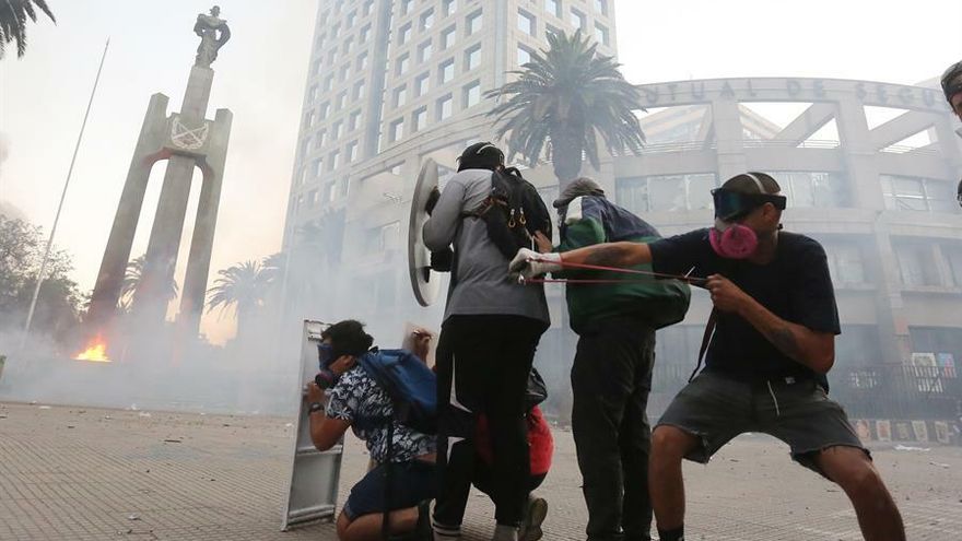 En las calles aledañas a la Plaza Italia algunos grupos de manifestantes se enfrentaron a Carabineros con piedras y cócteles molotov e hicieron retroceder a los efectivos policiales que resguardaban el monumento al cuerpo uniformado, a unas dos cuadras de la plaza.