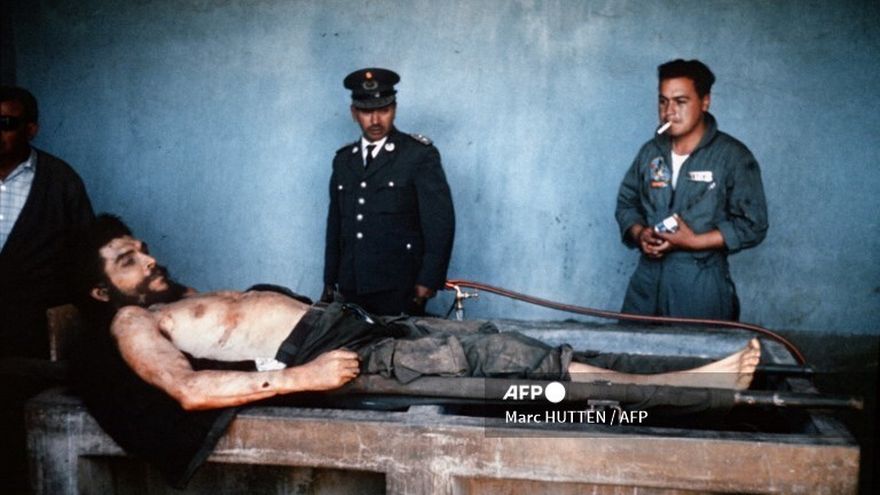 A los 39 años, el Che se transformaba en leyenda, mientras su cuerpo inerte y su rostro de ojos abiertos eran exhibidos como un trofeo en la vecina localidad de Vallegrande, una imagen que inmortalizó el fotógrafo de AFP Marc Hutten.