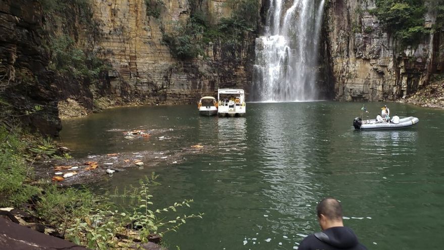 El sábado a mediodía, un gran fragmento rocoso se desprendió de un barranco y cayó, perpendicular, encima de tres lanchas que paseaban por el lago Furnas, una región turística de Minas Gerais.