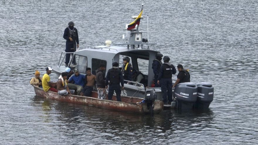 "Estamos en una inspección de rutina", advierte la militar mientras sus compañeros armados con fusiles revisan los documentos y las maletas de los tripulantes de un pequeño bote.
