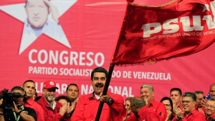Vestido con camisa roja, Maduro recibió el estandarte del Partido Socialista Unido de Venezuela (PSUV), en medio de la ovación de los más de 500 delegados de esa agrupación.