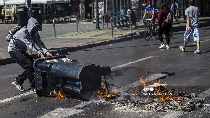Grupos de escolares y encapuchados protagonizaron disturbios en las cercanías del palacio presidencial de La Moneda, tras un llamado a conmemorar el "Día del Joven Combatiente", en recuerdo de dos hermanos asesinados en 1985 por agentes de la dictadura de Augusto Pinochet (1973-1990).
