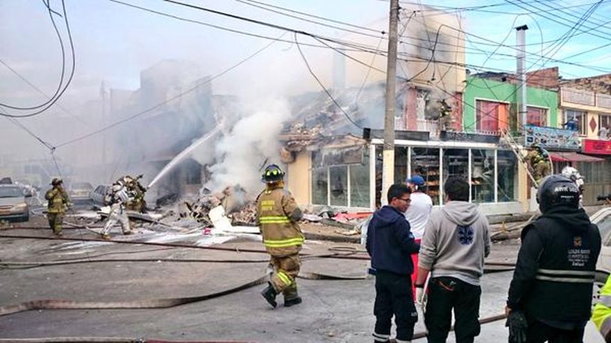 El aparato, que llevaba cuatro personas a bordo, cayó sobre una panadería de la localidad de Engativá menos de dos minutos después de despegar de El Dorado, lo que generó un incendio que destruyó el local comercial y afectó casas aledañas.