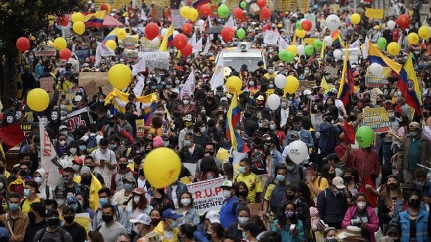 Colombia/Decenas de miles de personas protestaron este miércoles en Colombia contra un proyecto de reforma tributaria promovido por el gobierno de Iván Duque, cuando la cuarta economía de América Latina registra las cifras más altas de muertos por covid-19 en poco más de un año de pandemia.