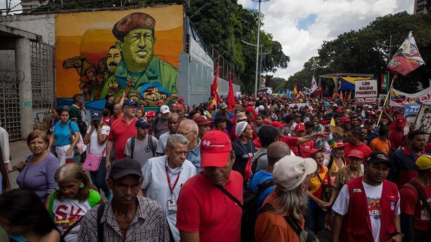 Miles de oficialistas marcharon hoy en Caracas para conmemorar los 20 años de la llegada a la Presidencia de Venezuela del exmilitar fallecido Hugo Chávez (1999-2013) y de su proyecto político conocido como la "Revolución Bolivariana".