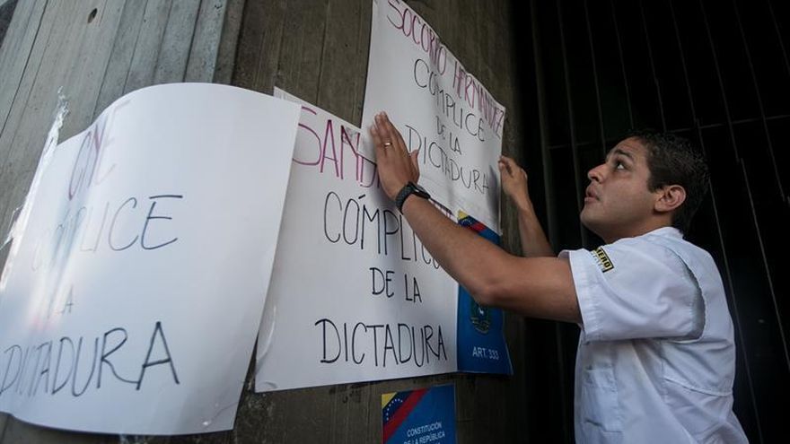 Además, una decena de legisladores acudió hoy hasta una de las sedes del Poder Electoral en Caracas para hacer una "clausura simbólica" de esta oficina por ser "cómplice de la dictadura".