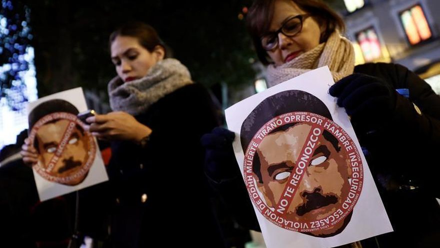 Un grupo de venezolanos se reunieron hoy en el centro de Madrid para denunciar lo que consideran el "golpe de Estado definitivo" del presidente Nicolás Maduro, que juró en Caracas para un nuevo mandato de seis años, tras las elecciones de mayo pasado.