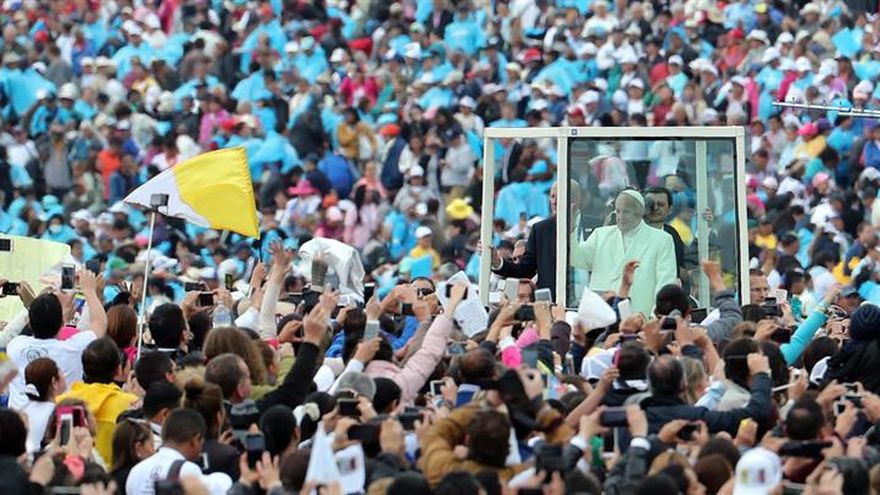 El papa Francisco congregó a más de 1,3 millones de personas en el parque Simón Bolívar de Bogotá donde celebró su primera misa campal de este viaje a Colombia y en la que hizo una defensa de la vida humana y advirtió de las tinieblas que amenazan el país.