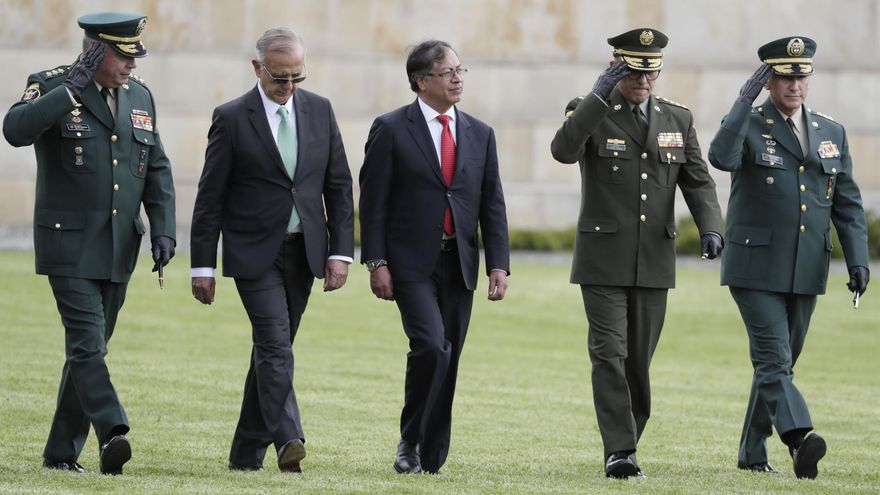 "Se trata de cambiar la concepción misma (...) lo que se le demanda por parte del pueblo colombiano (...) es un ejército que empiece a prepararse para la paz, que termine, ojalá si lo logramos, como un ejército de paz", declaró Petro en presencia de la nueva cúpula de las Fuerzas Armadas, que nombró el 12 de agosto.