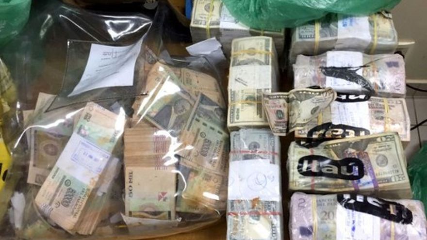 La Policía Federal de Curitiba indicó en su reporte actualizado que había decomisado un total de 1,2 millones de dólares, unos 220.000 reales (63.400 dólares) y unos 734 millones de guaraníes (131.000 dólares).