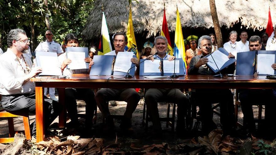Los presidentes y representantes de siete países suramericanos firmaron este viernes el "Pacto de Leticia por la Amazonia" para coordinar la preservación de los recursos naturales de la zona más biodiversa del mundo.