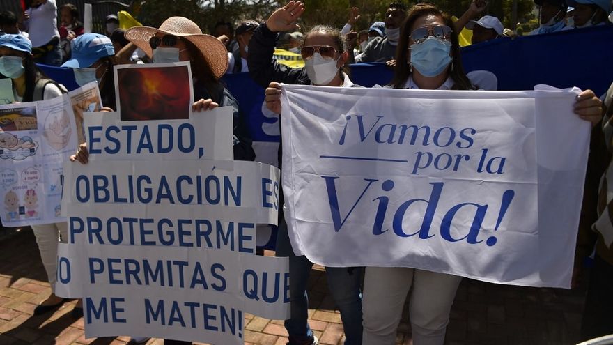 Activistas provida protestaron con rosario en mano. "Estamos aquí en defensa de las dos vidas porque no podemos normalizar el aborto, condenar a un inocente y peor aún dejar libre a un violador", comentó a la AFP Paola Flores, representante de Provida Latam y estudiante de medicina.