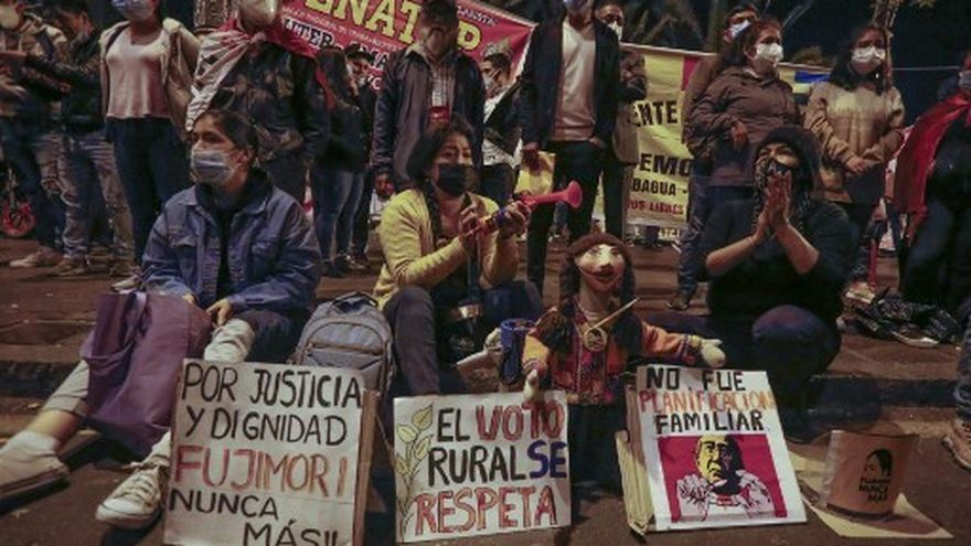 "Venimos en la lucha de nuestros votos, basta que nos pisoteen. Nos vamos a quedar hasta que se promulgue que el presidente es Pedro Castillo", promete Carmen Yachi Fernández, quien se desplazó a Lima desde la surandina Huancavelica, una de las regiones más pobres de Perú.