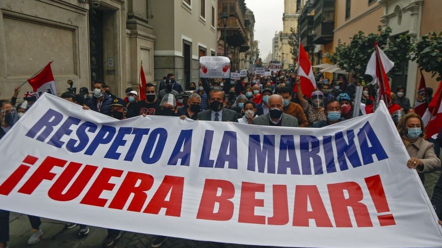 El alto mando naval había protestado el lunes en un comunicado señalando que "la Marina de Guerra del Perú deplora afirmaciones de esta naturaleza, que pretenden distorsionar la historia de la pacificación nacional".