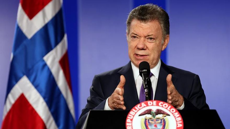 "Hay un fallo de la Corte Constitucional que dice claramente que en los próximos 3 periodos presidenciales hay un blindaje constitucional" y que "no se podrá aprobar ninguna ley o reforma que signifique el incumplimiento del acuerdo" de paz, dijo el jefe de Estado sin hacer referencia a alguien en especial.