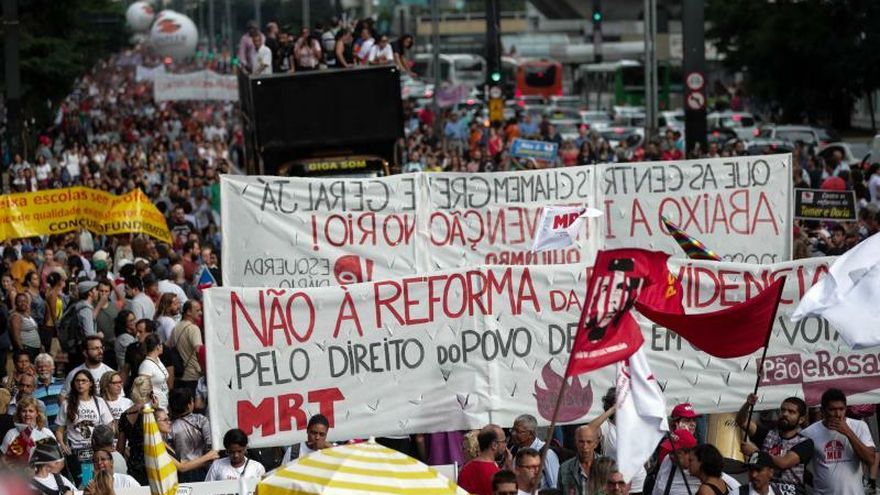Miles de docentes, alumnos, servidores e integrantes de movimientos sociales saldrán a las calles del país este miércoles para expresar su rechazo a los sucesivos recortes en las políticas educacionales, así como a "la persecución al pensamiento crítico" y la "agresión" a la autonomía de las escuelas a través de la "militarización escolar". / EFE