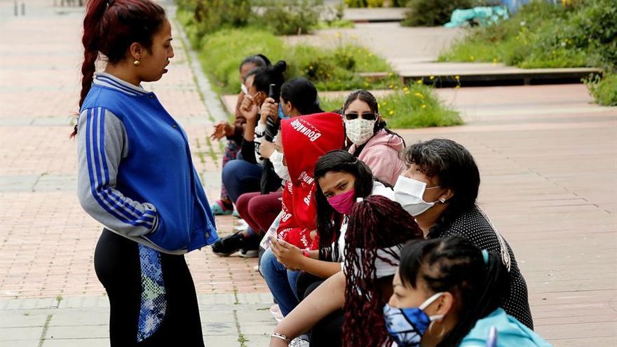 El hambre llevó este lunes a más de medio centenar de mujeres de una zona de tolerancia del centro de Bogotá a salir a la calle para recibir mercados gestionados por el Sindicato de Trabajadoras Sexuales de Colombia (Sitrasexco) ante la dramática escasez de ingresos que enfrentan por la cuarentena del coronavirus.