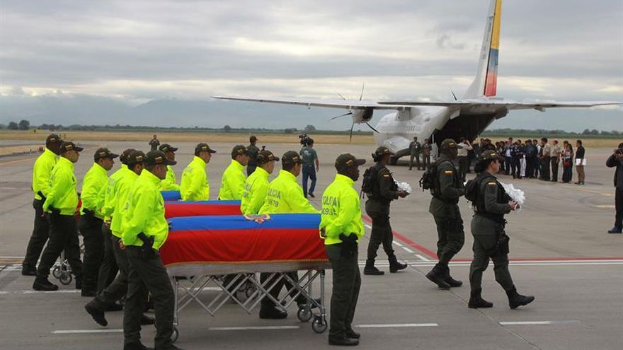 La Policía Nacional de Colombia hizo una calle de honor para recibir los féretros en el aeropuerto Alfonso Bonilla Aragón, ubicado en el municipio de Palmira y que presta servicio a la ciudad de Cali (suroeste). Los tres ataúdes, que fueron cubiertos con la bandera de Ecuador, fueron conducidos hasta el interior de la aeronave por policías.