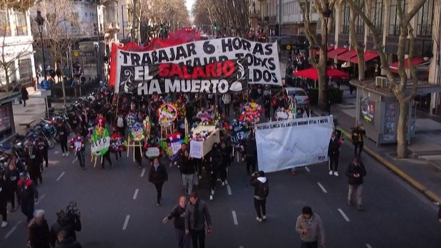 "En Argentina hay un montón de trabajadores por debajo de la línea de pobreza. Por eso estamos realizando esta medida de protesta. El salario mínimo vital y móvil ha muerto, ha sido pulverizado por la política económica", dijo a la AFP Marianela Navarro, una de las organizadoras de la manifestación.