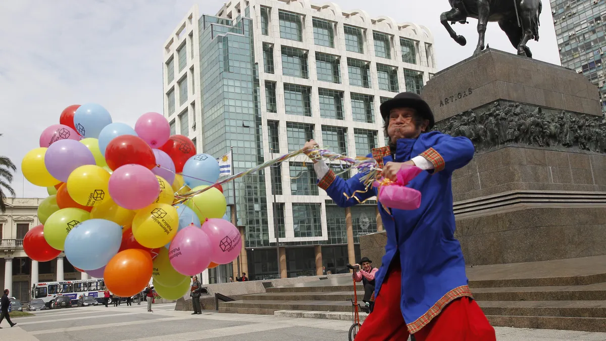La "movida" uruguaya se realizó en la plaza Independencia de Montevideo con malabaristas, mimos, payasos y zanqueros, que se encargaron de entregar folletos informativos.