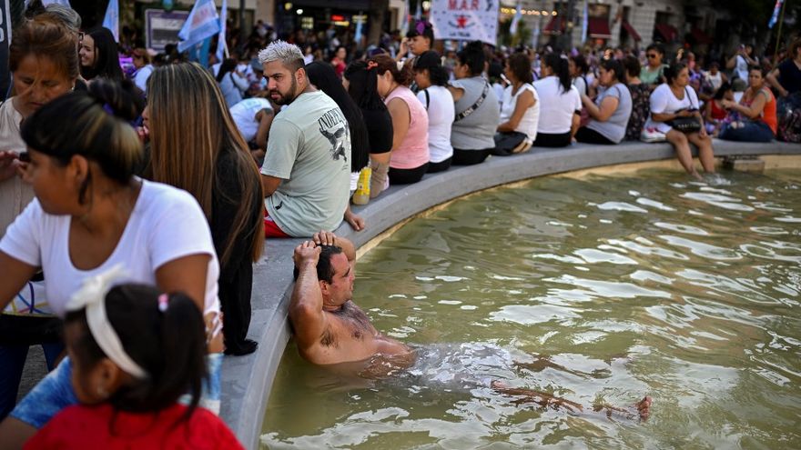 Con bombos y golpeando cacerolas, algunos manifestantes prendieron fuego a neumáticos para reclamar respuestas y expresar su desesperación por la falta de luz en sus viviendas y comercios, cuando se atraviesa la novena ola de calor de este verano austral.