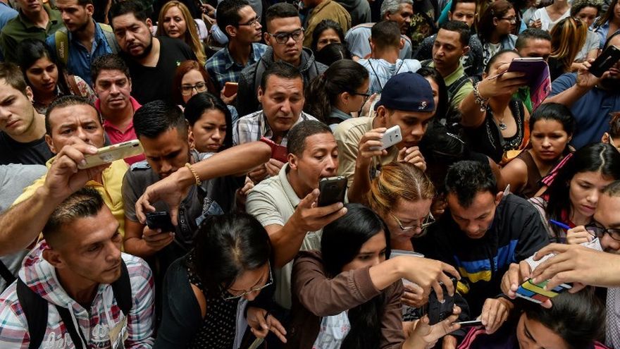 "No empujen, todos somos venezolanos", gritó alguien en medio de la aglomeración de unas 400 personas, controlada por una docena de policías.