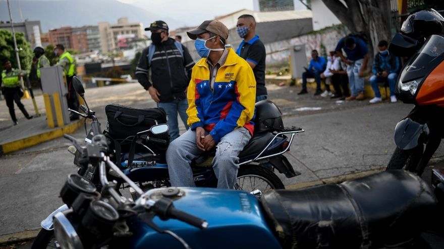 En la otrora potencia petrolera extensas filas de vehículos y motos rodean constantemente las estaciones de servicio.