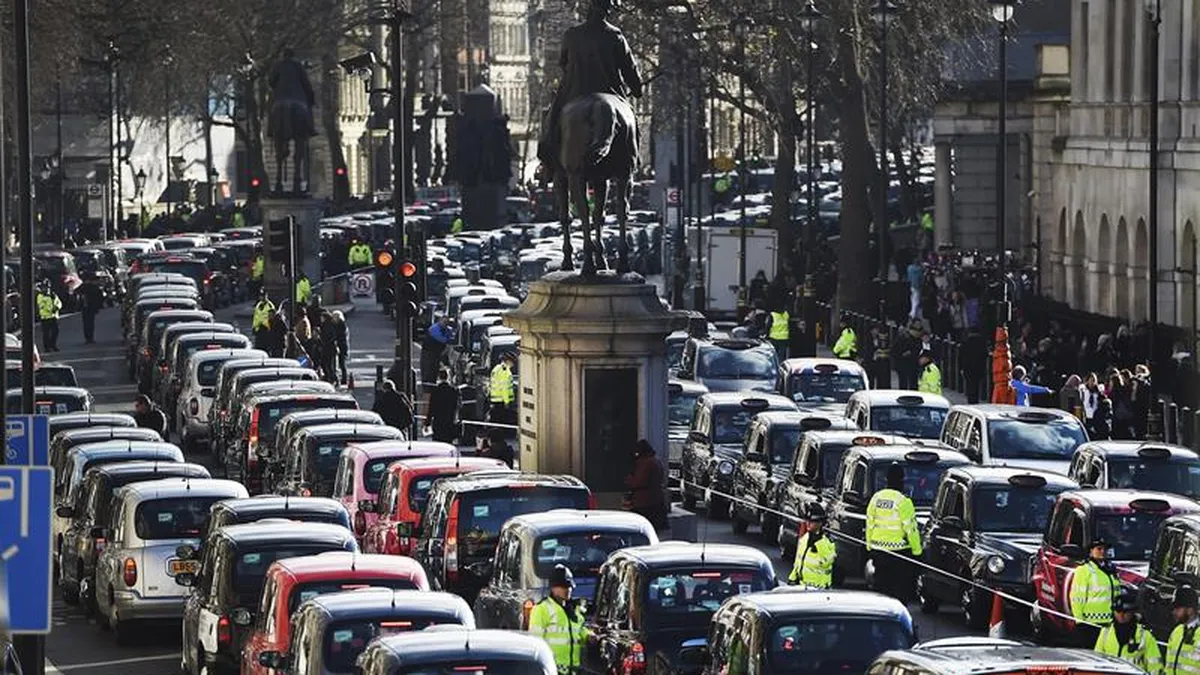 Más de 8.000 taxis, según los medios locales, participaron en una concentración que obstruyó las calles adyacentes al Palacio de Westminster, sede del Parlamento, y la avenida de Whitehall, donde se concentran los ministerios del Gobierno británico.