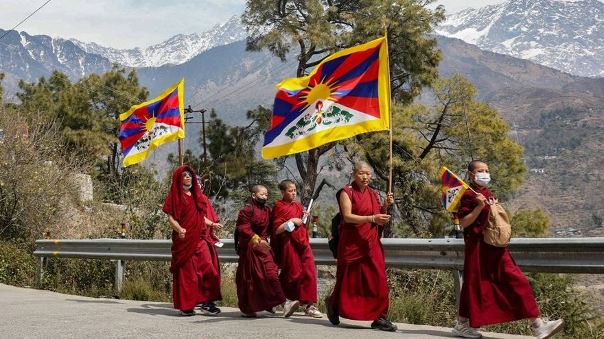 Dharamsala, India/Los tibetanos que viven en India ondearon el domingo la bandera de su patria durante las manifestaciones convocadas para conmemorar el 65 aniversario del levantamiento de su pueblo aplastado por China, que condujo al exilio del dalái lama y de miles de compatriotas tibetanos.
