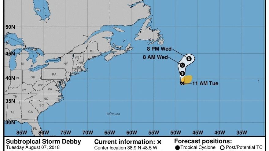 La tormenta Debby mantendrá esta dirección hasta que se disipe el viernes en el lejano Atlántico Norte convertida en "extratropical".
