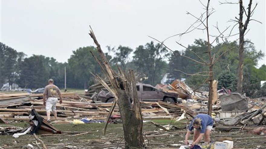 La tormenta fue parte de un sistema climático que comenzó el lunes por la tarde. Se anticipaban más tormentas el martes en un área que iba desde el este de Montana hasta Nueva York. El Centro de Pronóstico de Tormentas en Norman, Oklahoma, dijo que podían desatarse vientos poderosos, granizo de gran tamaño y algunos tornados, particularmente en Iowa, Wisconsin y el norte de Illinois.