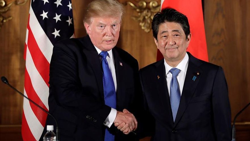 Abe y Trump se mostraron plenamente de acuerdo en aplicar una "máxima presión" sobre Corea del Norte para forzarle a abandonar sus programas nuclear y de misiles, e hicieron gala de una amistad sin precedentes entre mandatarios de estos países aliados, después de celebrar una cumbre en Tokio.