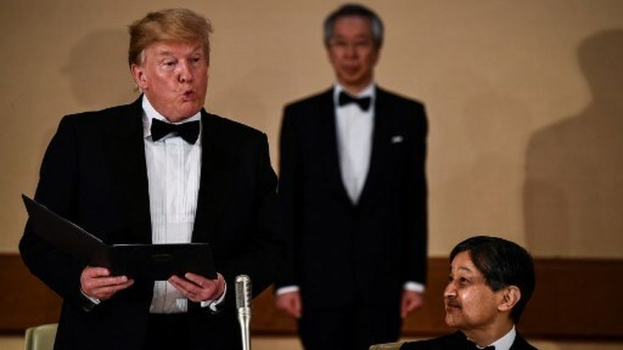 El lunes, Trump se convirtió en el primer mandatario extranjero en mantener un encuentro con el nuevo emperador de Japón, Naruhito, lo que describió como "un gran honor".