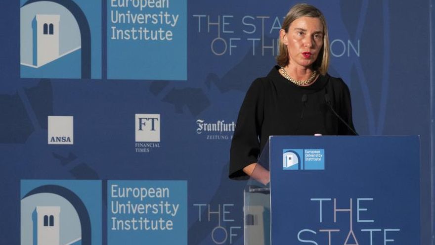 "Es una resolución del Consejo de Seguridad de Naciones Unidas y pertenece a todo el mundo. Un país no puede destruir o deshacer el acuerdo, porque los demás se quedan y la respuesta de la comunidad internacional respalda la implementación completa del acuerdo", dijo la política italiana en Florencia.
